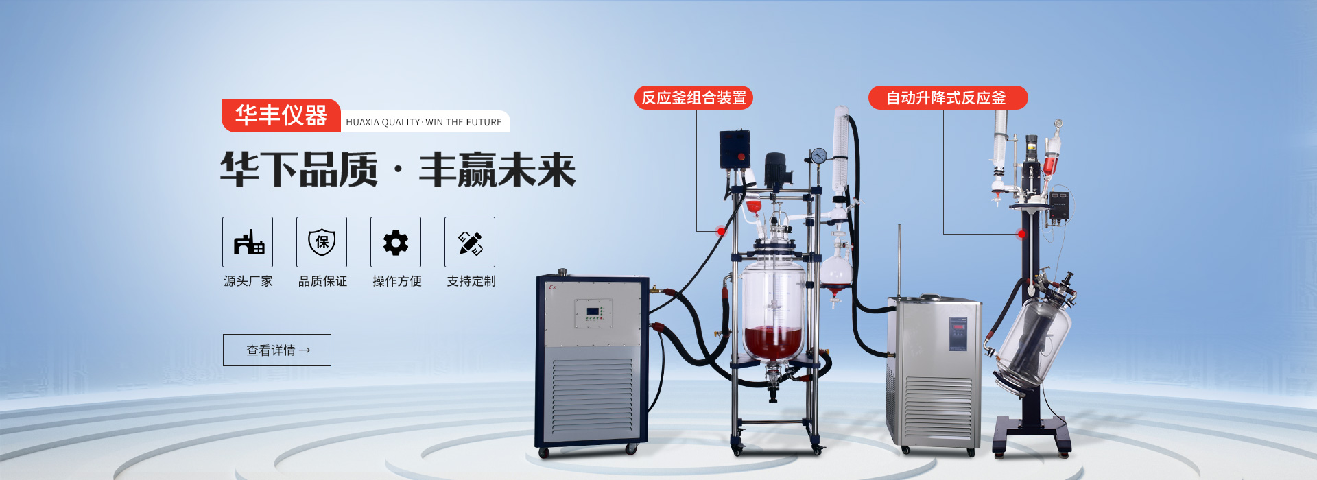 河南華豐儀器有限公司是一家從事化學生物制藥儀器研發、生產、銷售和服務相結合的高科技綜合性公司。 公司憑借雄厚的實力,完善的服務,敏銳的市場洞察力已研發生產十大系列四十多種產品。主要產品有:雙層玻璃反應釜、單層玻璃反應釜、高壓反應釜、旋轉蒸發儀、低溫冷卻液循環泵、高低溫一體機、高壓反應釜、水熱合成反應釜、循環水式多用真空泵、低溫恒溫反應浴、磁力攪拌器、電熱套、水浴鍋、油浴鍋、微波化學反應器、超聲波清洗器、電熱鼓風干燥箱、真空干燥箱、旋片式真空泵、冷凍干燥機......
